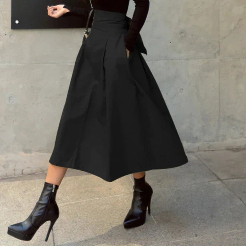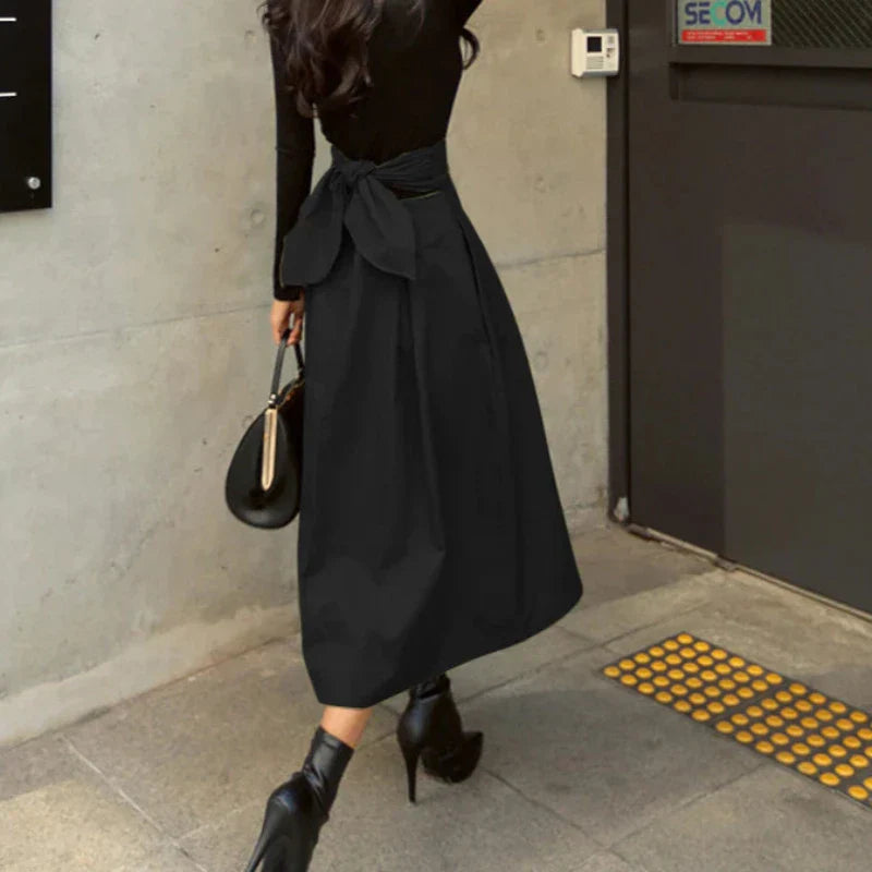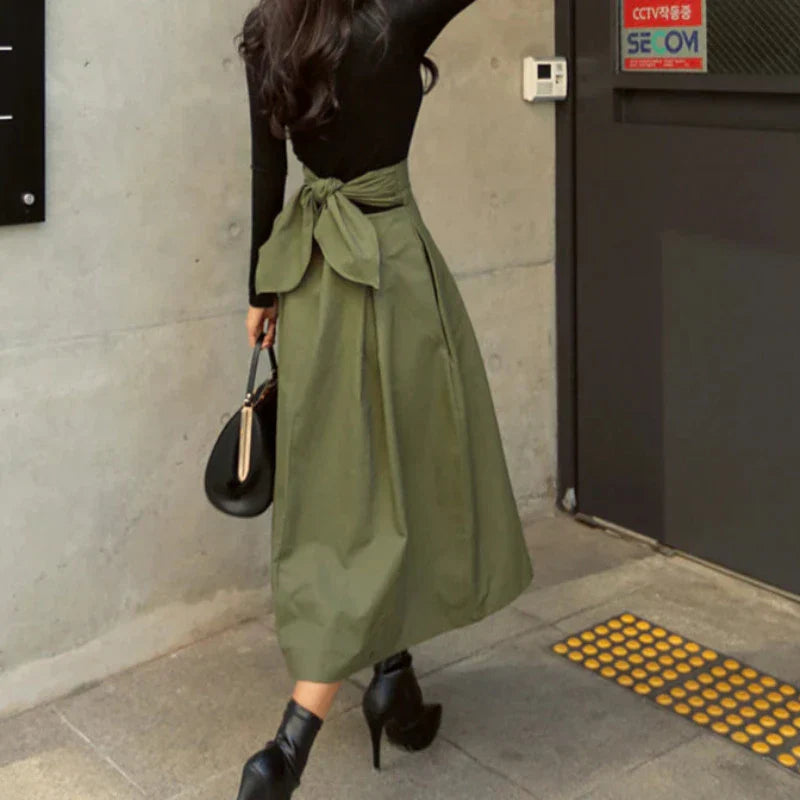 Solid High Waist Bow Maxi Skirt